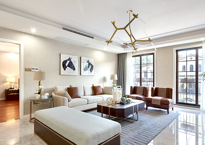 一塵不染、素凈澄明。用平靜的心靈看世界,利用淡淡的家具布局把原有的'空間凈化,把氣質和品位含蓄地表現出來……